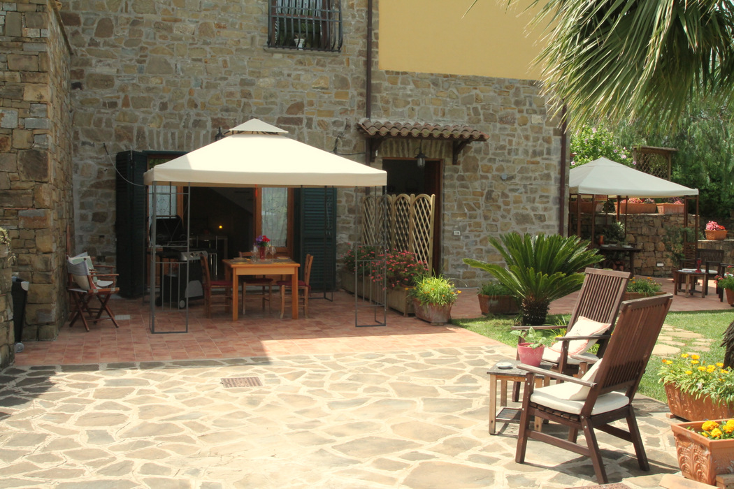 arredato con mobili da esterno ed un gazebo attrezzato con tavolo e barbecue, la